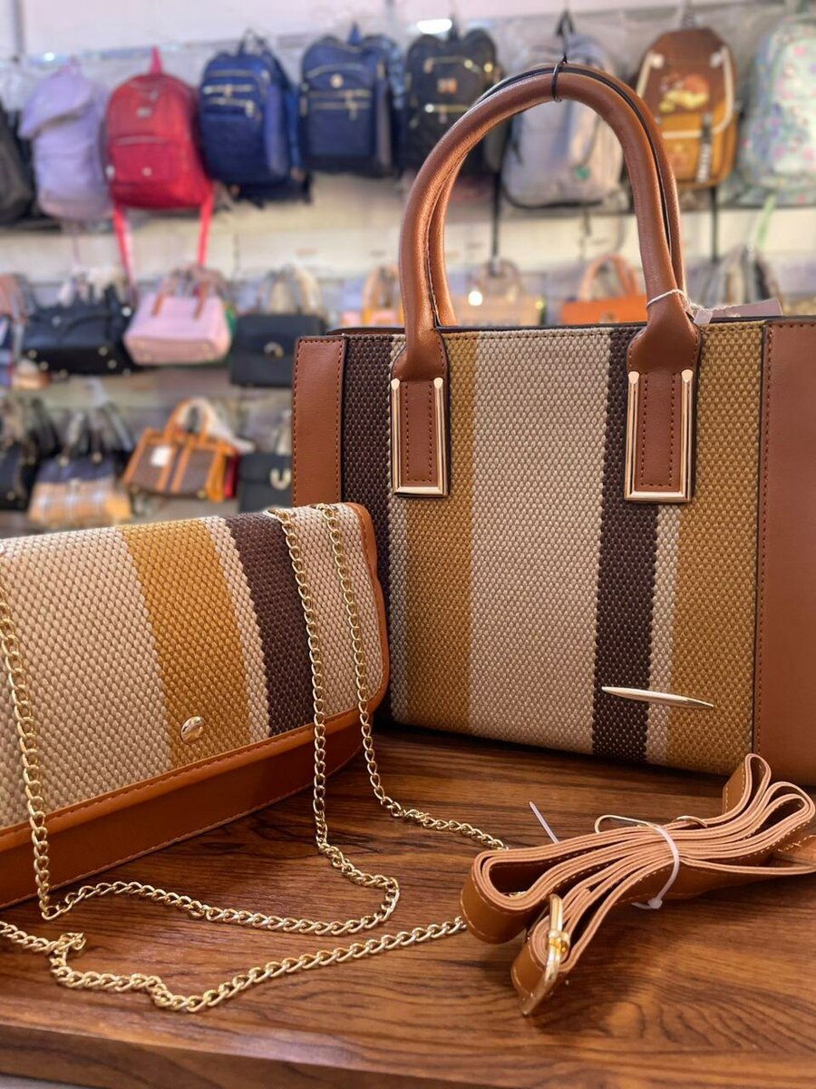 Découvrez notre ensemble de sacs à main rayés 2 en 1, parfait pour ajouter une touche d'élégance à votre tenue. Comprend un spacieux sac à main et une pochette assortie avec chaîne dorée. Idéaux pour le quotidien ou les occasions spéciales, ces sacs allient style et fonctionnalité. Disponibles en plusieurs couleurs.