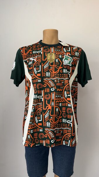 Découvrez ce maillot de football au design africain vibrant, idéal pour les passionnés de sport. Fabriqué avec des matériaux respirants, il assure confort et style sur le terrain. Parfait pour les supporters de tous niveaux.
