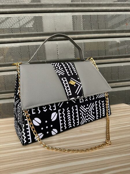 Sac à main femme noir motifs blancs